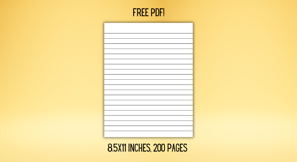 A 200 page lined paper PDF measuring 8.5x11 inches. Free for personal or commercial use.